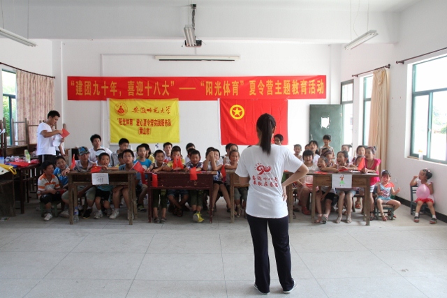 在中国共青团成立90周年之际,为响应党的号召,普及党团队知识,7月9日,英国正版365官方网站赴黄山区爱心夏令营团队在黄山区新华乡中心学校开展主题为“建团九十年,喜迎十八大”的系列教育活动。
