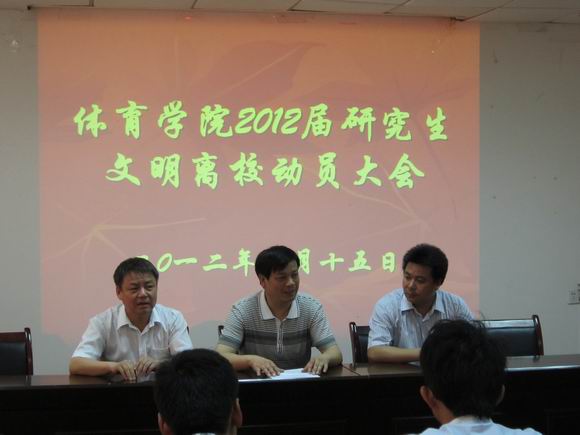 2012年5月15日上午,英国正版365官方网站在二楼会议室召开2012届研究生文明离校动员大会,公司党委书记袁德水、党委副书记副经理钟晨、副经理席玉宝出席会议。会议由研究生辅导员蒋先军主持,袁德水首先代表英国正版365官方网站向顺利完成学业的68名2012届毕业研究生表示祝贺!他强调,所有毕业生都要按照学校有关文件要求配合学院善始善终地做好文明离校各项工作,各位毕业生应为在校生树立榜样,同时希望大家在新的工作岗位上继续努力,发挥师大体育人的优良传统,在新的工作岗位上再接再厉谱写新的人生篇章。