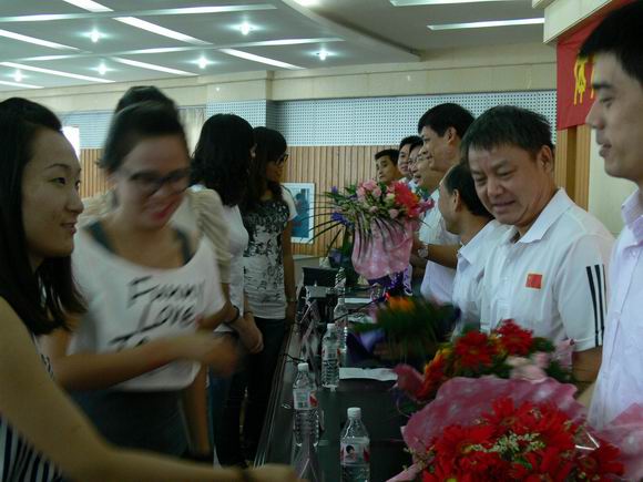 毕业典礼在雄壮的国歌声中拉开序幕。首先,经理雷震代表学院致辞,吴本亮老师代表任课教师为毕业生寄语,非毕业班代表2009级体育教育专业徐义玲同学、毕业本科生代表2008级体育教育专业徐梦涛同学分别致欢送词和答谢词。随后,毕业生代表向与会的领导、老师献花,一束束美丽的鲜花传达了深深的感激之情。