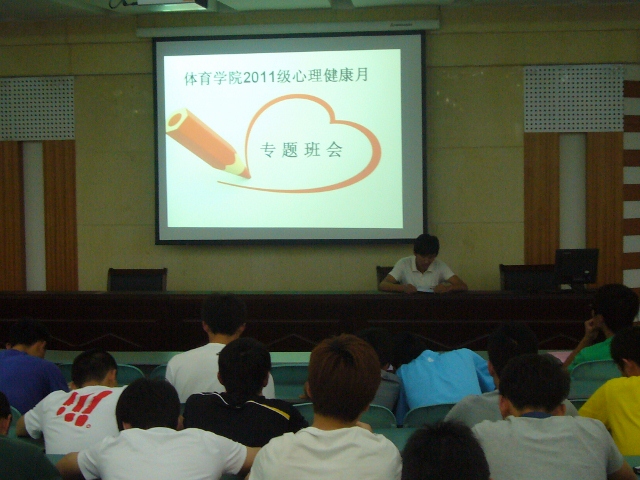 为面向学院员工宣传和普及心理健康知识,响应学校“5月25日心理健康月”主题活动。5月27日,2011级社会体育、体育教育专业全体同学在英国正版365官方网站圆形报告厅进行心理健康教育主题班会。此次班会由11级辅导员汪华伟老师主持。
