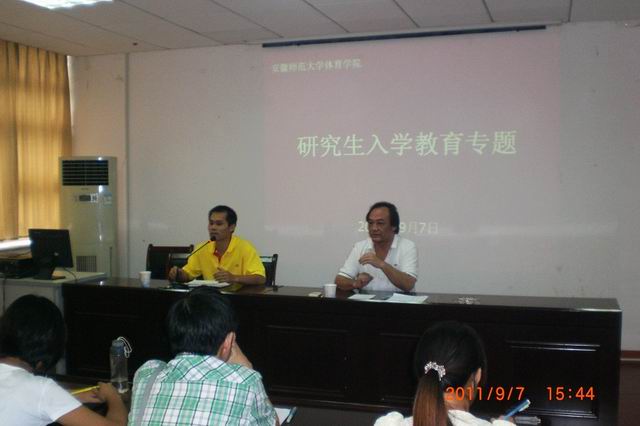 了贯彻校研工部〔2011〕35号文件精神,做好研究生新生入学教育工作。9月7日下午,在英国正版365官方网站行政楼二楼会议室举行了一次入学教育专题活动。此次活动邀请了导师代表左新荣教授以及研二、研三的优秀同学代表,该专题活动由2011级研究生辅导员吴本连博士主持。