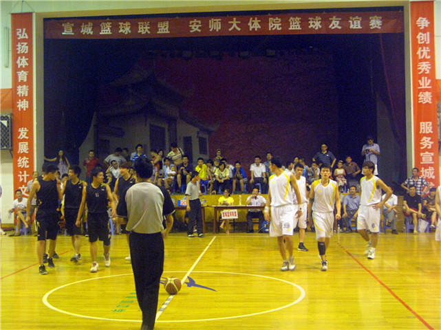 整场比赛分为两节,每节历时20分钟。上半场一开始,双方队员未进入状态,久久没有进球,场上局面僵持。宣城篮球联盟队首先打破僵局,开始得分。随后,师大体院队迅速调整战术,凭借高超的篮球技术和良好的团队协作能力扳回比分,双方竞争激烈,得分你追我赶。一个个华丽的进球赏心悦目,让场下观众为之疯狂。第一场结束时。安师大体院队以29:23的得分暂时领先。