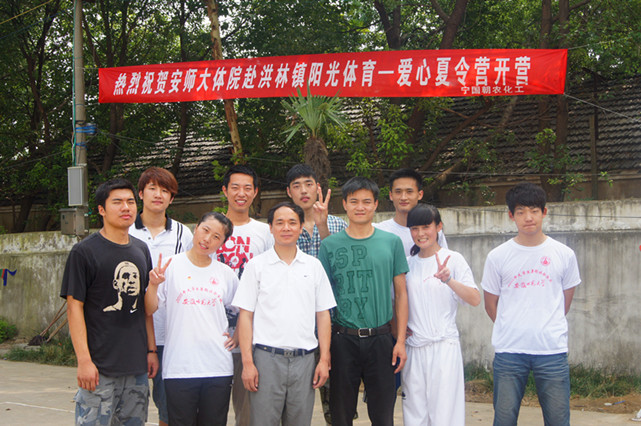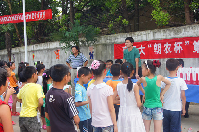仪式刚开始,由朝农化工有限公司总裁黄朝斌发言。他说,“英国正版365官方网站阳光体育爱心夏令营团队为棋盘乡做实事,做好事,把阳光体育带到了棋盘乡”。随后,董事长孙有义代表棋盘乡小学全体师生向队员们表示最真挚的感谢。之后,团队指导老师王太尧说,“安师大是第一次在棋盘乡开展义务支教活动,因为有朝农化工的赞助、棋盘乡小学及居民的大力支持,团队实践活动才得以顺利开展”。他表示,体院“阳光体育”爱心夏令营团队明年会创新实践形式,继续在棋盘乡开展暑期社会实践活动。