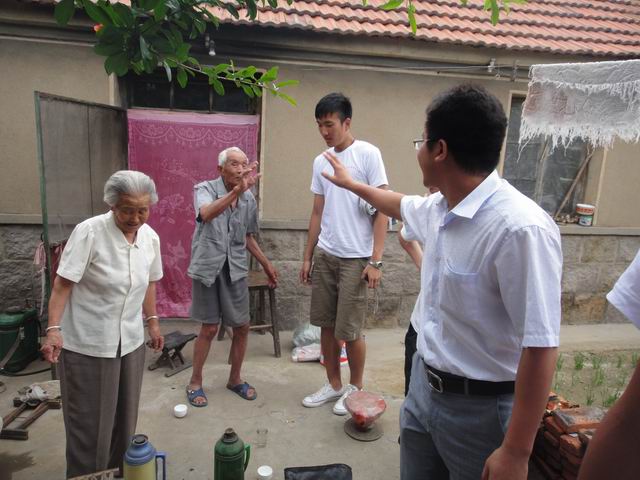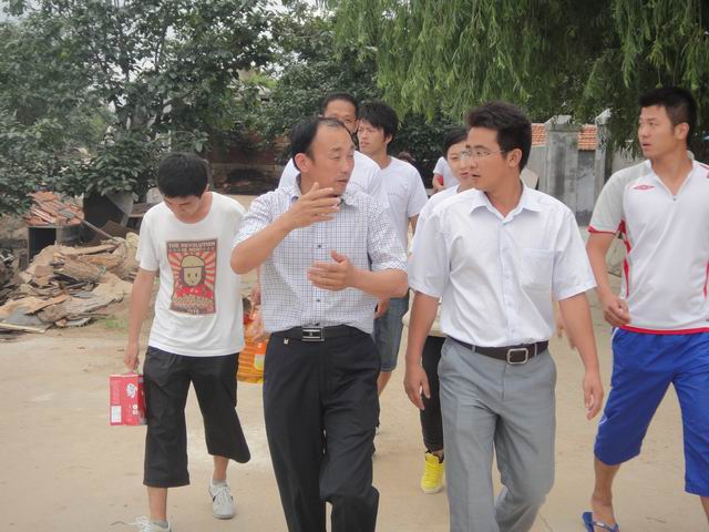 2011年7月5日,英国正版365官方网站赴青岛“阳光体育”爱心夏令营团队来到黄岛开发区辛安镇北山薛村走访慰问贫困村民及孤寡老人。上午,团队所有队员拿出自己的零花钱、压岁钱和平时勤工俭学所得,到当地市场才够生活必需品。当地市场营业员听说是采购慰问品,卖主主动给队员们进货价,有的卖主主动捐赠部分生活用品。下午,在英国正版365官方网站10级辅导员仲飞老师的带领下队员们身背肩扛的带着采购的慰问品来到北山薛村,在村支书的引导下对该村的贫困户和孤寡老人进行了慰问并赠送了带来的慰问品。