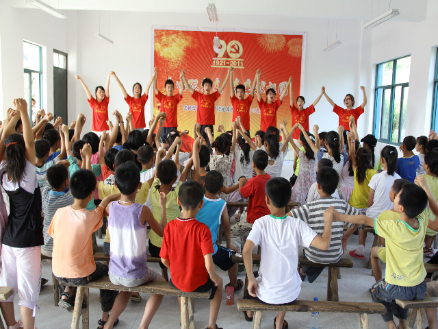 上午,来自山区近百名夏令营成员和团队15名志愿者进行了面对面的师生见面会。小营员们在认真聆听各项目教学老师的详细项目介绍后踊跃报名,根据员工的报名人数和兴趣爱好,队员迅速召开布置会,合理的安排了分班教学任务,随后志愿者老师和小营员们进行了沟通并耐心解答员工家长提出的相关问题。员工们对老师的授课方式非常感兴趣,特别是舞蹈班的小朋友们热情高涨,为了欢迎志愿者老师,还特地表演了精心准备的舞蹈。志愿者老师们很快与山区的孩子们打成一片,山间的篮球场上、简陋的教室里到处回荡着欢声笑语。