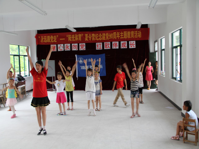 “老师,你们终于来了”。对于黄山区新华中心学校的孩子们来说,一年一度的阳光体育夏令营是他们暑假最期盼的事了, 7月4日,英国正版365官方网站赴黄山区“阳光体育”夏令营团队志愿者们经过短暂的休息后,迅速投入到活动中,开展武术、篮球、乒乓球、羽毛球、体育舞蹈等各项体育素质拓展活动,团队指导老师陈实冒着高温酷暑亲临教学点慰问指导全体志愿者。