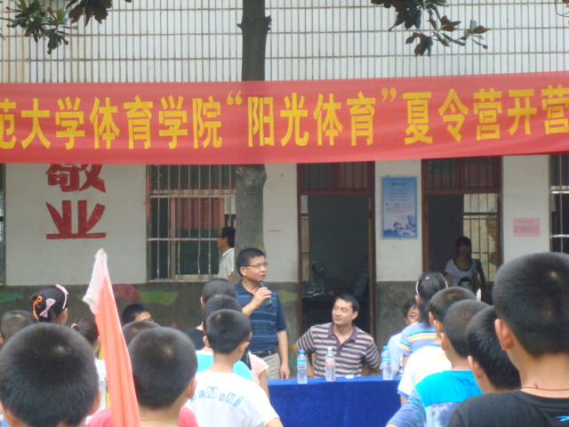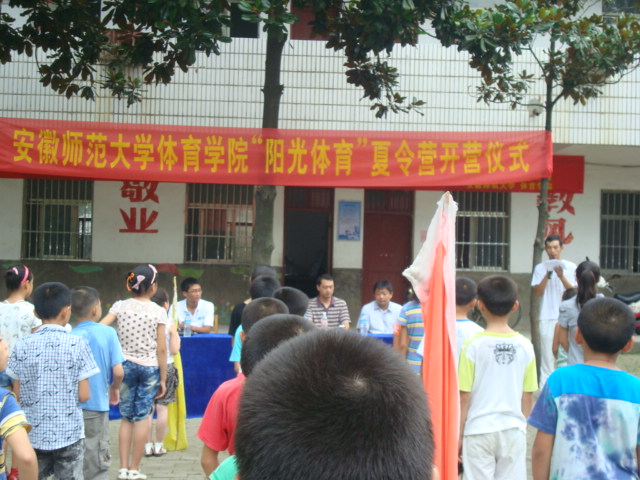 盛夏七月,骄阳胜火。正是“夏木阳阴正可人”的时候。7月11日,英国正版365官方网站赴宣城市泾县“阳光体育”夏令营开营仪式在志诚学校正式启动。泾县教育局陈局长,安师大体院院团委书记黄德春老师及全体实践团团员参加了仪式。