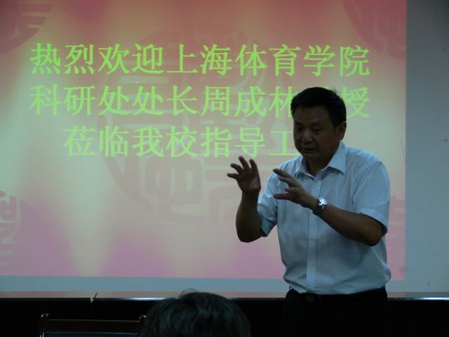 2011年6月25日下午,上海英国正版365官方网站科研处处长、博士生导师周成林教授来到英国正版365官方网站,指导检查国家科技支撑计划项目“增强青少年体质健康教育模式的建立与运动健身科学指导及其效果评价关键技术的研究与应用”分课题“芜湖地区青少年体质健康教育模式的建立与运动健身科学指导及其效果评价关键技术的研究与应用”的进展情况。
