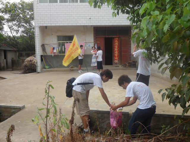 在上午进行完日常支教课程之后,分队利用午休时间外出开始了“环保理念下农村”宣传。首先队员分成两组,每组队员由队长带领沿街义务拾垃圾,并在拾垃圾的过程中,挨家挨户针对农户进行低碳环保理念知识的普及和宣传。宣传的内容包括日常生活节约技巧,例如购物时使用布袋,多次反复利用。另一方面是低碳环保理念的普及、培训,例如应购买节能灯等。在宣传活动中,队员们认真履行着自己的职责,顶着高温与炎热将路边垃圾清理干净,并且耐心地为村民解答疑问。这次活动使村民更好地理解了关于“环保理念下农村”这一主题的意图,更好的让环保理念深入村民内心,促进他们环保意识的提高,让村民们可以在生活中真正运用到环保知识。在此次“环保理念下农村”活动的两个小时里,村民们积极配合,队员们积极合作。“环保理念下农村”得到了当地居民的一致好评,产生了良好的效果。