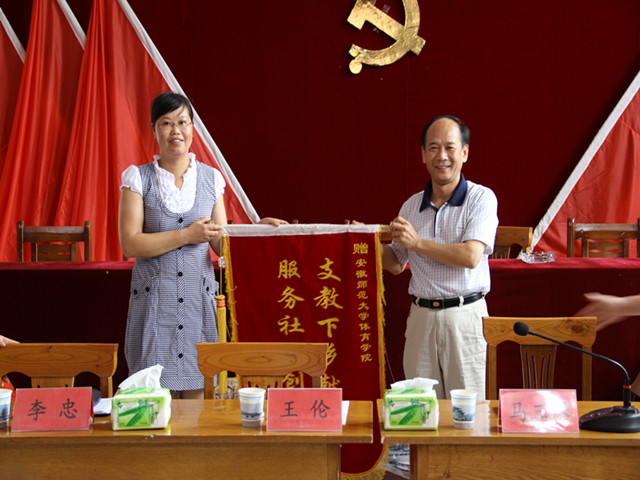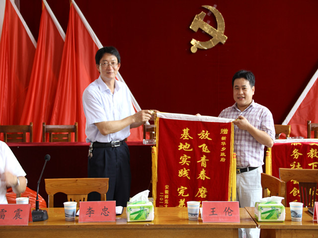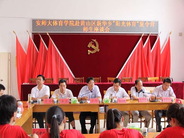 在座谈会之前,王伦与还与黄山区领导共同参加了“阳光体育”爱心夏令营开营暨结对捐助仪式,并就暑期社会实践基地共建与新华乡互赠锦旗。