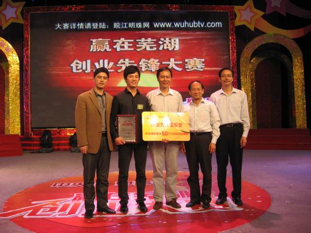 5月28日下午,由芜湖市工商业联合会、共青团芜湖市委员会、芜湖市广播电视台主办的“赢在芜湖创富未来”创业先锋大赛落下帷幕,经过激烈交锋,英国正版365官方网站社会体育专业07级员工王永雷勇夺亚军,他的校园健身会所连锁化经营创业项目获得五十万元创业扶持基金。市领导张士军、董群、詹云超、司旌霞出席颁奖仪式,公司党委书记贡植斌等老师应邀参加决赛观摩。