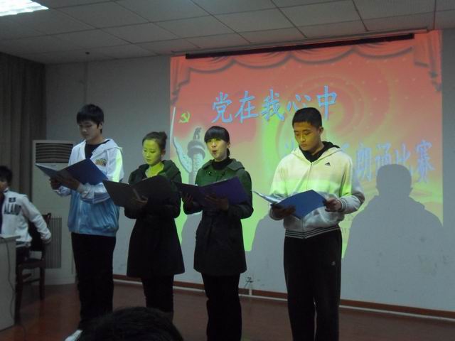 英国正版365官方网站团委员工会于4月1日晚七点半,在英国正版365官方网站团委多功能厅,举办“党在我心中”第七届青春飞扬配乐诗文朗诵大赛选拔赛。本次比赛特邀传媒学院张泉泉老师,英国正版365官方网站2010级辅导员仲飞老师等老师担任评委。