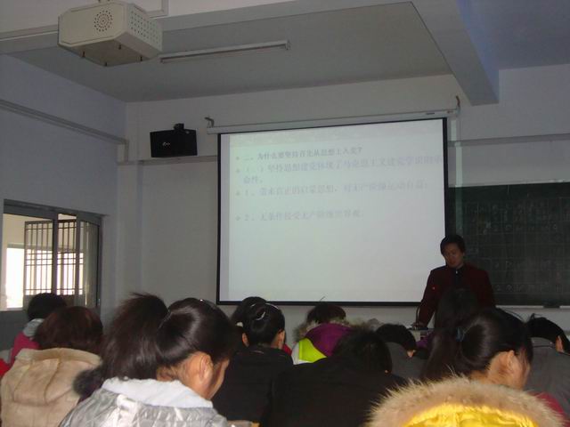 毕部长围绕马克思建党学说的两个重要概念:思想入党和组织入党展开教学。他主要向学员们介绍了思想入党的概念、目的以及为什么要坚持首先从思想上入党,即:一、坚持思想入党体现了马克思主义建党学说的革命性;二、我党的历史和建设实践证明了思想入党的必要性;三、从世界一些执政党的兴衰看思想建设重要性;四、党面临的形势和任务决定了加强党的思想建设的紧迫性。毕部长强调作为新时期的老员工必须从思想上入党,首先应该端正入党动机,然后从五个方面加强党性锻炼:一、武装头脑;二、完善人格;三、抓好学习;四、勇于实践;五、积极乐观。最后,他简单介绍并总结了组织入党与思想入党的区别。