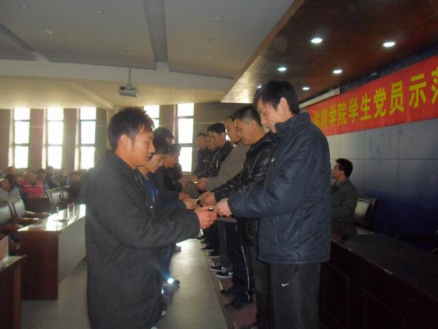会议开始,首先举行了新党员入党宣誓。由正式党员代表陈梦莹带领73位新党员在党旗前进行庄严宣誓。随后,钟书记对全体辅导员示范岗进行了授牌仪式,员工党支部书记对员工党员示范岗进行了授牌仪式。