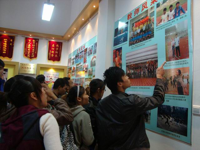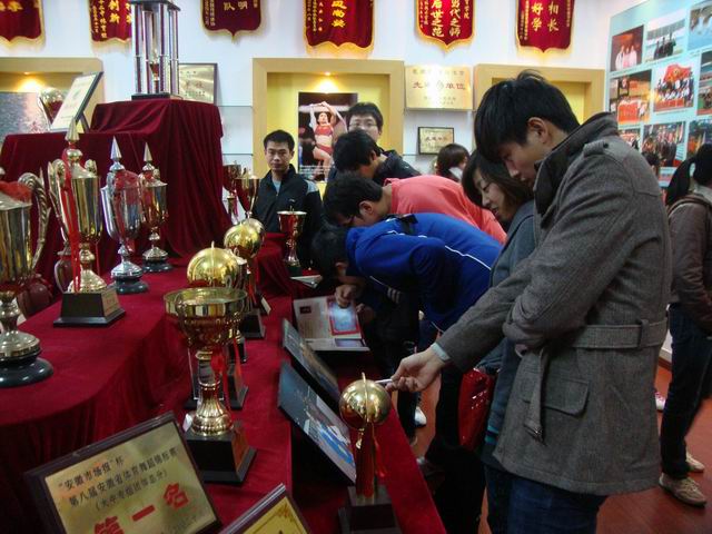 09级体育教育专业张凤同学在参观期间表示这样的活动使自己受益匪浅,看到这么多的奖杯、锦旗,激励了自己有朝一日能够站在同样的舞台,为体院争光,为师大夺彩,为中国的体育事业做出自己的贡献!