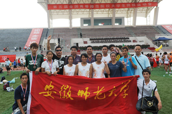 7月25日,第五届全国高等师范院校老员工田径运动会在四川师范大学举行,全国共59所院校800余名运动员参赛。公司由英国正版365官方网站经理雷震教授领队,吴峰、王俊智、吴爱兵为教练,率领10名运动员参加了本次比赛。在代表团全体人员的共同努力下,经过4天的拼搏,取得了可喜的成绩,获得了男子十项全能银牌,男子200米、女子3000米、男子跳高、女子七项全能和男子铅球铜牌,女子200米、女子400米第四名,男子200米、女子800米、女子1500米和女子4×400米第六名,女子4×100米第七名,男子100米第八名。