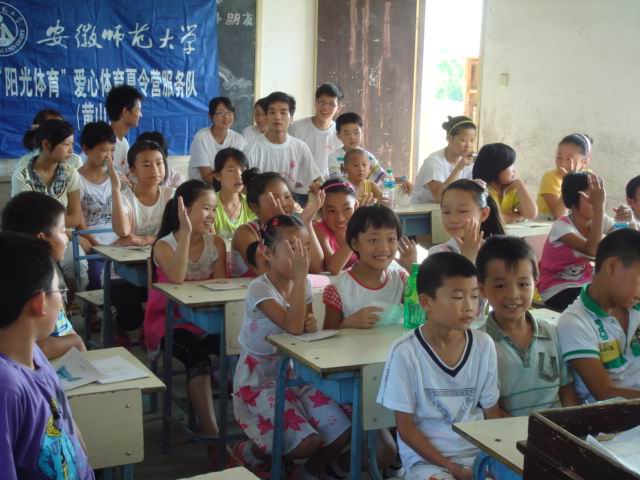 新华乡中心学校地处黄山区偏远山区,交通不便,员工们平时接触的体育运动项目非常少。自2007年以来,英国正版365官方网站团委已连续4年来此开展“阳光体育”夏令营特色暑期社会实践活动,选派优秀员工投身义务支教,受到当地群众的一致好评。新华中心学校谢董事长说:“志愿者们冒着酷暑为小员工们授课,不仅丰富了孩子们的暑期生活,更重要的在同学们心中种下了理想的种子。”