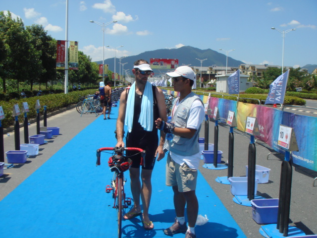 铁人三项比赛是奥运会正式比赛项目,所需动用的裁判以及相关服务团队是目前所有竞技体育比赛当中最多的,其工作也最为繁杂。本次赛事,志愿者们继续发扬着“奉献、友爱、互助、进步”的志愿精神,用青春和汗水谱写了一曲曲感人的赞歌。