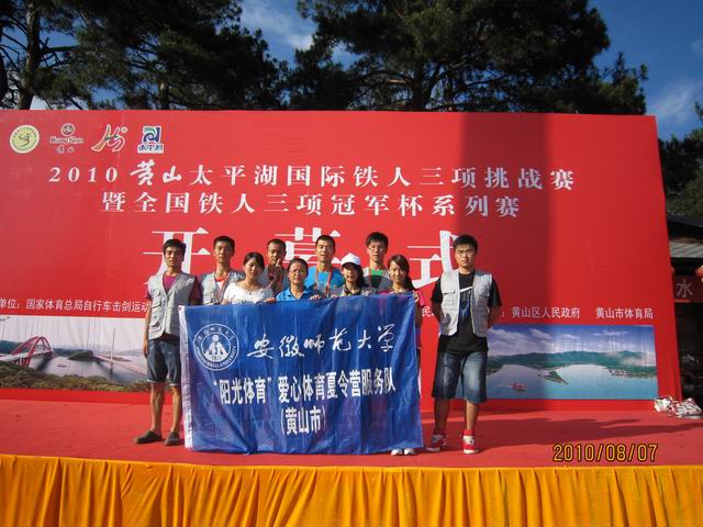 8月8日,中国黄山国际铁人三项挑战赛暨全国铁人三项冠军赛在黄山区隆重举行。应大赛组委会邀请,结合公司“阳光体育”夏令营暑期社会实践活动,英国正版365官方网站14名志愿者担任了此次竞赛裁判团队辅助技术官员工作,成为赛事的又一闪亮点。