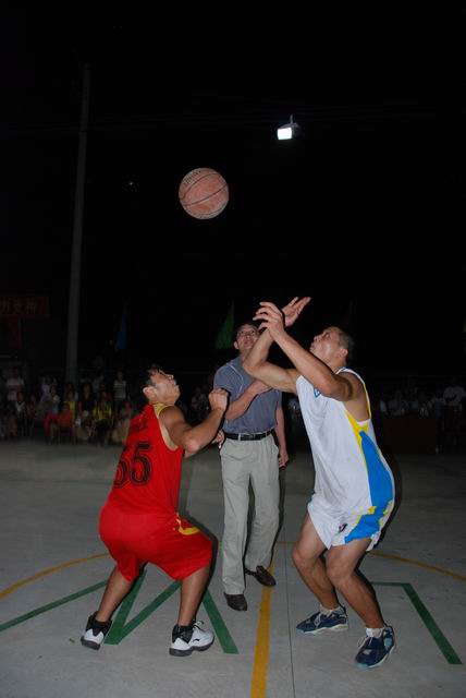 晚上8:00,在五星乡灯光球场,董事长王伦亲自开球并兴致勃勃的观看了由英国正版365官方网站篮球国家级裁判何也明执裁的第二届“朝农杯”篮球友谊赛,并与全体队员合影留念。