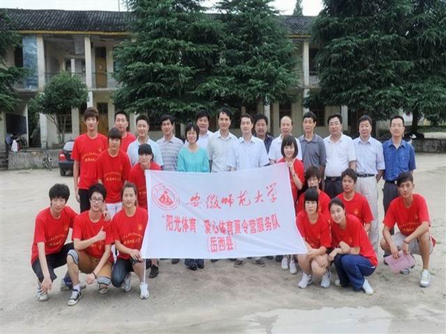 7月13日上午,英国正版365官方网站赴岳西县“创先争优、爱心奉献”爱心体育特色暑期社会实践活动在岳西县教师进修学校正式启动。活动得到岳西县政府的大力支持。共青团岳西县委书记储昭霞、教育局党组书记徐璞、安庆市财政局办公室主任程庆华、岳西县财政局办公室主任徐爱民、公司暑期社会实践特邀指导教师—安庆市公园小学教师胡丽平出席了启动仪式。安师大英国正版365官方网站团委书记黄德春,团队指导教师魏本好、陈实也冒着大雨专程赶到岳西县参加启动仪式并对团队成员进行了指导和慰问。