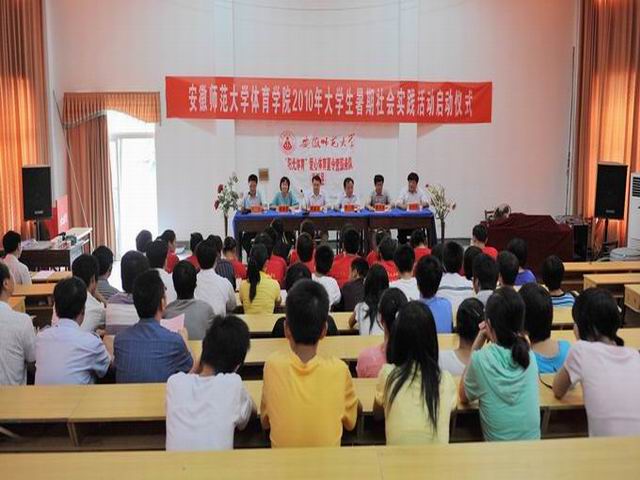 启动仪式由陈实老师主持。首先是储昭霞书记致欢迎词,她介绍了岳西当地地理经济区位因素和亟待开发的现状,并由衷感谢安师大暑期社会实践队来到这里进行义务支教和开展送温暖活动。接下来是我队队长程子庸同学发言,他对我队的实践情况和活动开展以及相关活动流程作了介绍。在接下来的七天的时间里,我队将依次进行义务支教,义务劳动,世界杯和健康知识宣传,参观石关国家体育训练基地,走访安庆受灾贫困家庭,敬老院,爱国教育,红色之旅,参观企业,举办篮球友谊赛等十几项实践活动。随后,院团委书记黄德春老师对该团队进行了高度的评价。他说,投身实践是党和国家对青年老员工的一贯要求,既符合教育发展规律和老员工成长规律,又适应经济社会发展的现实需要,希望同学们好好珍惜在岳西县的七天实践时间。并提出了三点要求,一是强化安全意识,安全责任重于泰山;二是要强化宣传,要宣传我们实践成果;三是重视实践,把“读万卷书”与“行万里路”结合起来,做知行合一的当代知识青年。在实践中真正实现长才干、受教育、做贡献的学习目标,从而使我们更好的成人、成材、成功。最后由魏本好老师宣布本期暑期社会实践活动正式启动。