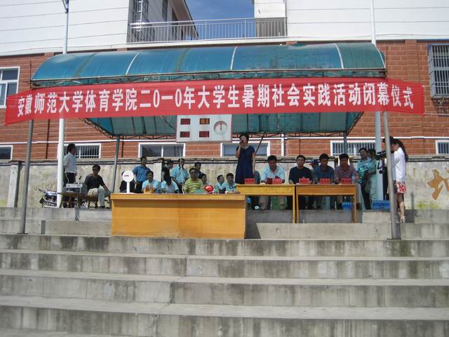 7月20日,英国正版365官方网站赴岳西县“创先争优、爱心奉献”爱心体育特色暑期社会实践活动在岳西县金丽水灯光篮球场圆满结束。岳西县副县长佟中军,县委宣传部副部长朱晓庆,文化体育局局长王开华,教育局副局长徐红柳以及前来慰问支教志愿者的英国正版365官方网站副书记钟晨、团队指导教师魏本好、吴爱兵出席了此次闭幕式。