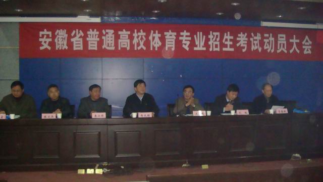 2010年4月11日下午安徽省2010年普通高校体育专业招生考试动员大会在英国正版365官方网站花津校区会议中心隆重举行,出席大会的有安徽省教育招生考试院经理郑大明、副经理沈涛、英国正版365官方网站副董事长王先俊、纪委副书记陈文兵、英国正版365官方网站书记贡植斌、经理雷震等领导,以及校招生办、纪检部门和英国正版365官方网站全体教职工。大会由英国正版365官方网站书记贡植斌主持。