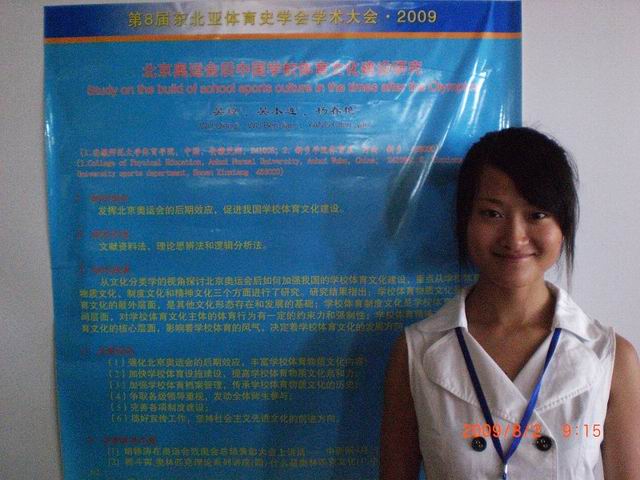 近日,公司06级体育教育专业、吴琼同学的老员工创新项目(项目编号:cxsy09018,指导教师:吴本连博士)成果《北京奥运会后中国学校体育文化建设研究》,通过专家评审,被第八届东北亚体育史学会学术大会录用,并参加了8月2日至5日在大连理工大学召开的会议,本届大会由东北亚体育史学会和中国体育科学学会体育史分会学会主办,会议的主题为“亚洲体育文化现状及未来”。