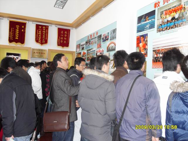 2009年3月28日上午10:00,英国正版365官方网站第十期入党积极分子培训班全体成员在班主任崔世兵老师的带领下,参观了位于花津校区南侧体育馆内的英国正版365官方网站荣誉展室。