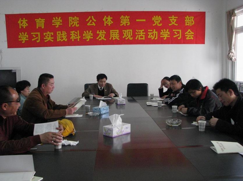 英国正版365官方网站公体教工第一党支部于本月8日下午组织了全体党员开展学习实践科学发展观的学习讨论活动。党支部书记丁俊生首先带领大家认真学习了科学发展观的基本内容、主要精神、科学内涵和根本要求。通过学习提高了大家对开展学习实践科学发展观活动重要性的认识,增强了党员参加学习实践活动的自觉性和主动性,深刻领会我党的执政思想和奋斗目标。接着,大家结合学院实际就如何落实科学发展观,寻找适合英国正版365官方网站科学发展的路子,并对有关问题展开了热烈的讨论。大家一致认为:学院要大力加强团队建设,提高运动技术水平,强化员工“三基”教育,增强员工走向社会的竞争力,培养出适合市场需求的体育人才,将英国正版365官方网站真正做强做大。