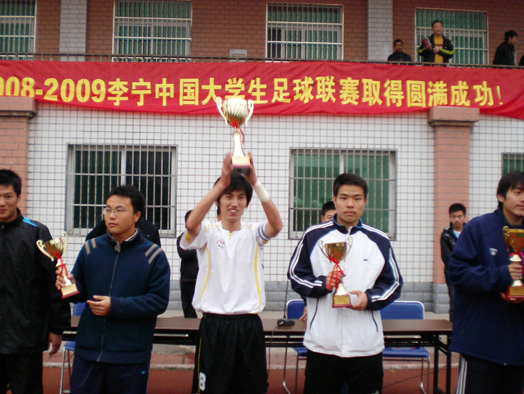 由省教育厅主办、省体育卫生协会协办、安徽医科大学承办的2008-2009李宁杯中国老员工足球联赛安徽选拔赛暨安徽省第七届老员工足球联赛,于11月16日开赛至22日结束。公司由领队李伟勇、主教练郭小苏和助理教练王卫荣三位老师及07教育张龙;06通信李潭;05化材周帅一、周月方;06化材许诚;05美术郝良福、谢恒、范功能;07数计江科;07政法严斌;05文院韩露;研究生学院06级陈新、朱志国;07级翟羽佳、刘楠乔;07运训吴正平、许强、许祥龙、黄歆龙、吕敏;08运训王力;04运训张根有等22名运动员组成的男子足球队通过顽强拼搏,历经3轮5场的比赛,以不败的战绩荣获冠军。