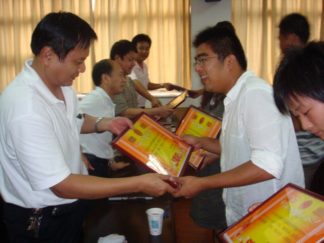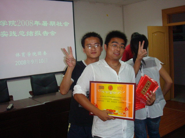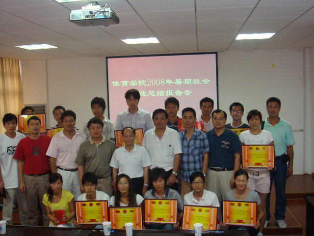 会上,来自学院各年级的共10支重点团队或小分队以PPT的形式对此次暑期社会实践工作进行了总结汇报,他们的汇报图文并茂,紧抓各个实践活动的主题,并用最具表现主题的图片配合精彩的团队成员感想,突出社会实践过程的艰辛与成果收获的喜悦。本次汇报分别评出重点团队一、二、三等奖和院级小分队一、二、三等奖。2007级体育教育一班以赴天长“青春建功新农村”重点团队获重点团队组优秀组织一等奖,2006级体育教育专业赴芜湖、皖北“宣扬奥运、践行荣辱观”小分队获小分队组优秀组织一等奖。公司党委书记贡植斌老师对同学们的活动汇报给予了点评,对本次暑期社会实践给予了充分的肯定,对同学们在活动中的表现给予了高度评价,并希望同学们在今后的暑期实践活动中再接再厉,争取更大成绩。随后,院领导亲自为获奖团队和个人颁奖并和获奖同学代表合影留念。