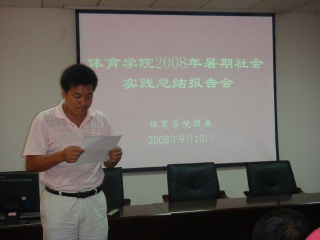 为响应校团委的号召,积极配合学校开展暑期社会实践总结汇报工作,9月10日下午4:00,英国正版365官方网站团委在院行政楼二楼会议室召开了学院2008年暑期社会实践总结汇报会。公司党委书记贡植斌老师、经理雷震教授、党委副书记钟晨老师、副经理席玉宝教授、副经理杨强老师出席了本次汇报会并担任了组织奖的评委,全体辅导员参加了会议,院团委书记黄德春主持会议。