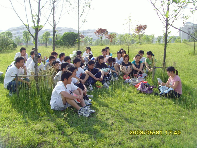 5月31日下午,英国正版365官方网站全体入党积极分子在班主任操伊芬老师带领下,来到教学楼前的草坪上以一种轻松愉悦的方式学习胡锦涛总书记在北大的讲话。
