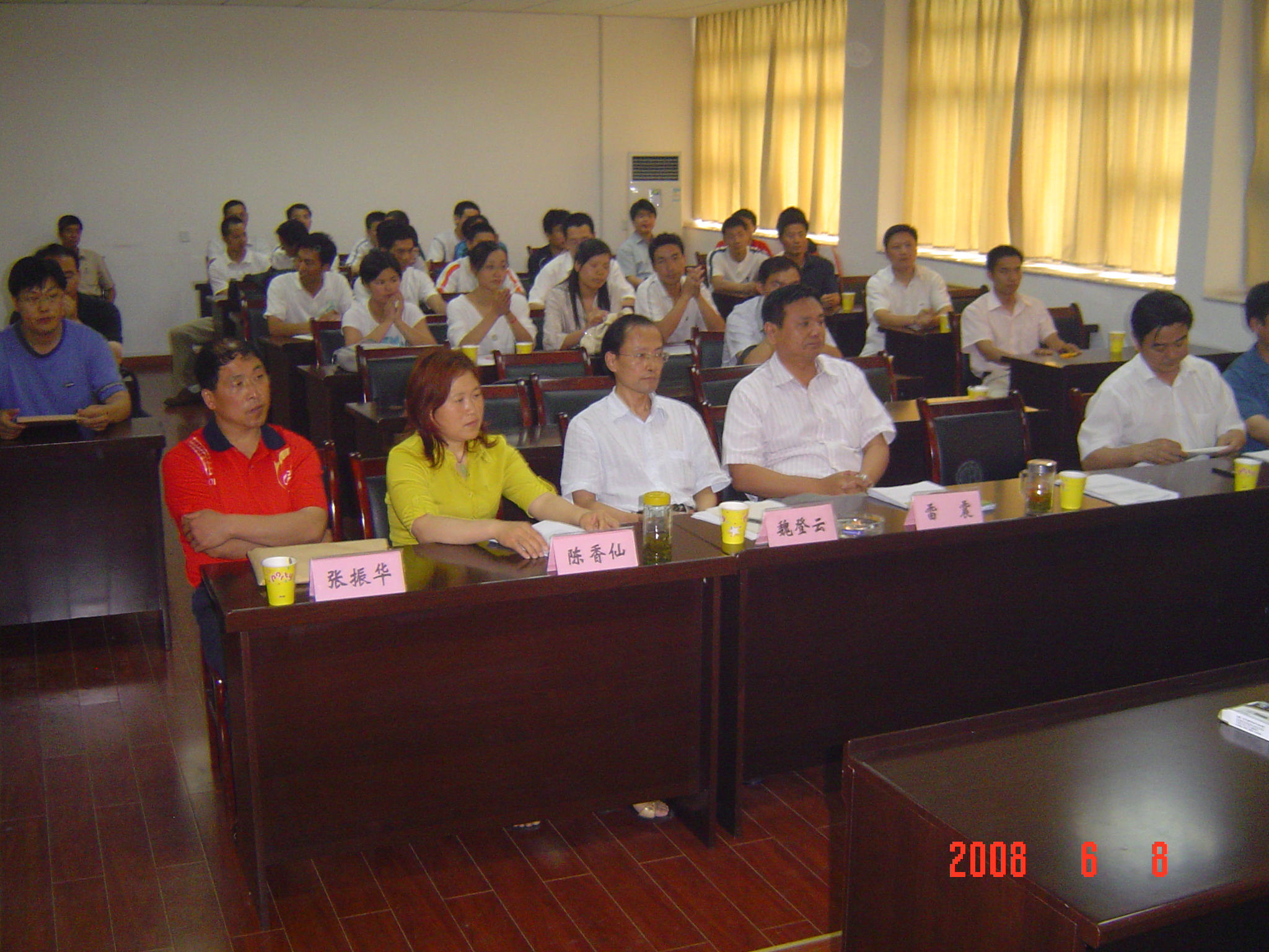 6月7-8日,国务院学位委员会体育学科评审组成员、全国学校体育专业委员会副理事长、全国高校体育指导委员会技术学科组长、苏州大学英国正版365官方网站经理、博士生导师王家宏教授,山东大学公司党委书记、硕士导师刘涛教授应邀来公司主持2008届体育人文社会学、体育教育训练学专业硕士毕业生论文答辩会。