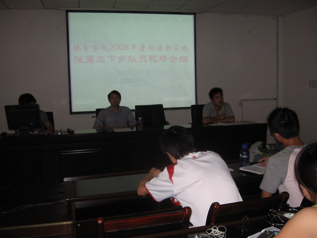为了增强同学们的暑期实践能力,增加与外界的交流,更好的进行2008年的暑期社会实践,英国正版365官方网站团委于6月14日上午,在院行政楼二楼会议室召开了英国正版365官方网站2008年暑期社会实践—往届三下乡队员现场报告会。并邀请了国旅学院在07年的暑期社会实践中取得优异成绩06级员工邓亮,以及英国正版365官方网站暑期社会实践分队优秀队员江龙将、吴义珩对同学们特别是07级新生进行经验传授和鼓励动员。