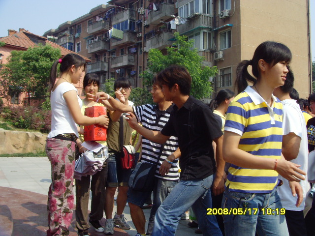汶川地震,牵动亿万中国人的心,地震无情人有情,为了表达对灾区人民真挚的问候,5月17日上午9点,英国正版365官方网站第八期入党积极分子培训班的全体学员于王稼祥纪念馆门前,举行了捐款活动。