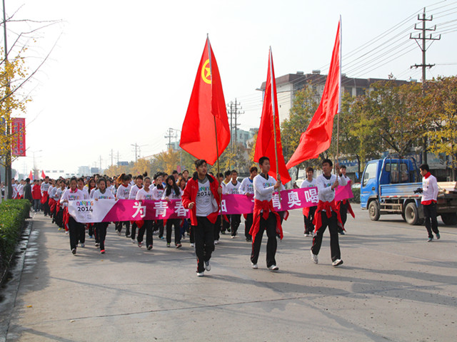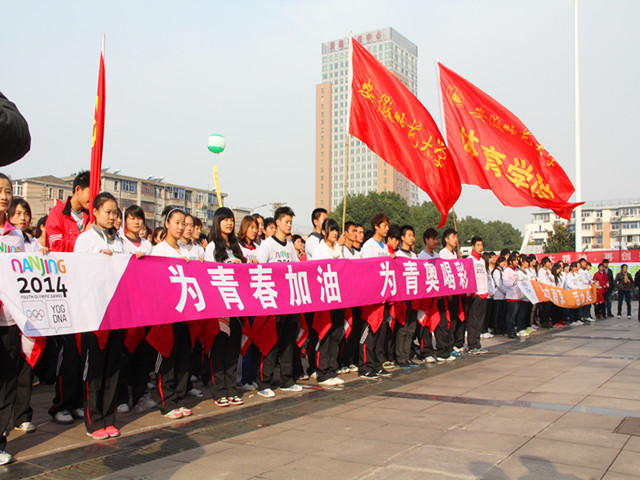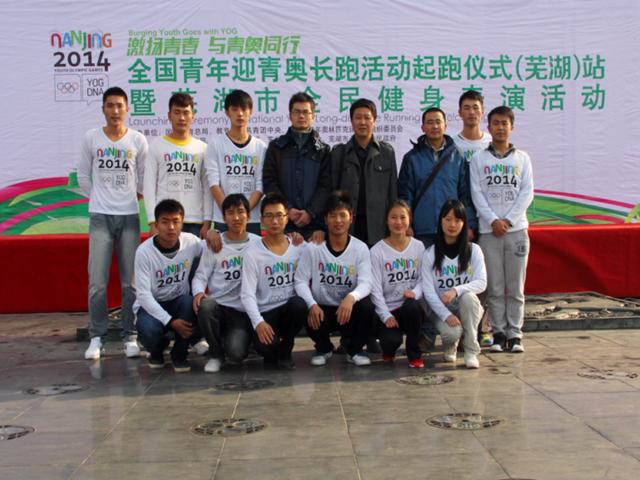 11月24日上午9:30,由国家体育总局、教育部、团中央、南京青奥组委会主办,芜湖市体育局、教育局、团市委、芜湖市弋江区人民政府协办,以“激扬青春、与青奥同行”的“全国青年迎青奥”长跑活动为主题的一系列活动在芜湖奥体中心主广场拉开序幕。英国正版365官方网站团委应团市委邀请组织英国正版365官方网站全体新生参加了本次活动。