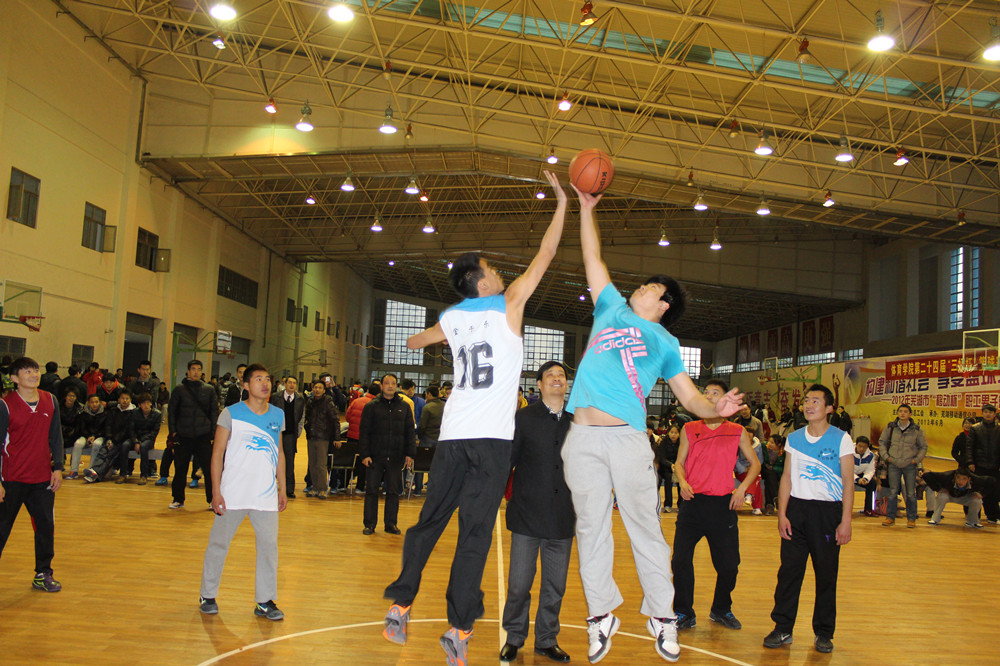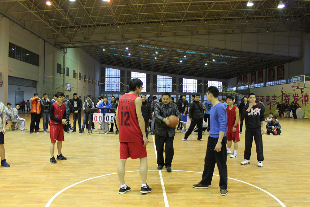 简短有序的开幕式结束后,本届“三好杯”篮球赛的第一轮小组赛就正式开始。袁德水书记、雷震经理以及何也明老师分别为三个比赛场地的比赛开球。