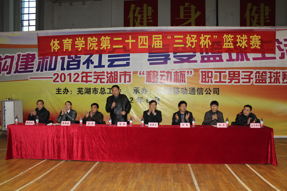 下午4点半,伴随着欢快的入场曲,各代表队运动员在引导员的引导下有序进入赛场。在庄重的国歌声中,开幕式正式拉开帷幕。袁德水书记简要介绍了学院“三好杯”篮球赛的由来以及本项赛事在体院师生中的突出位置。他提到,体院“三好杯”篮球赛参加人数之多,影响范围之广,在学院体育文化活动中堪称之最,如今“三好杯”已具有品牌效应,体现了学院开展这项赛事工作活动化、活动项目化、项目品牌化、品牌社会化的“四化理念”。同时他还希望全体运动员顽强拼搏、不断超越、赛出风格、赛出水平,充分展示体院员工的良好品德素质和过硬专业素养。09运动训练专业李磊磊以及体院研究生张春莲分别代表运动员和裁判员宣誓,大家都表示比赛中服从安排,尊重比赛,为办成一届成功的赛事而努力。雷震经理宣布了本届“三好杯”篮球赛正式开幕。