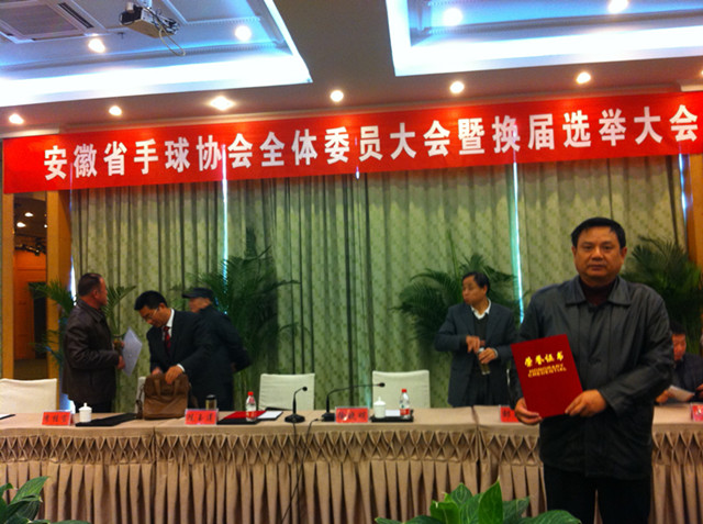 在全省体育人以奥运健儿为榜样,努力实现各自领域的“更高、更快、更强”之时,在党的十八大胜利闭幕之际,安徽省手球协会于2012年11月18——19日在桐城市召开全体委员大会暨换届选举大会,总结安徽省五年来手球运动工作成果和经验,以科学发展观为指导,共商安徽省手球事业在新的历史时期的发展大计。公司经理雷震教授参加了会议,并在换届选举中当选为安徽省手球协会新一届副主席,这是省手球协会对公司开展手球运动和体教结合取得较好成绩的肯定、鼓励。我们将求真务实、开拓进取、积极推进手球事业在高校全面快速发展,做出更大的贡献。