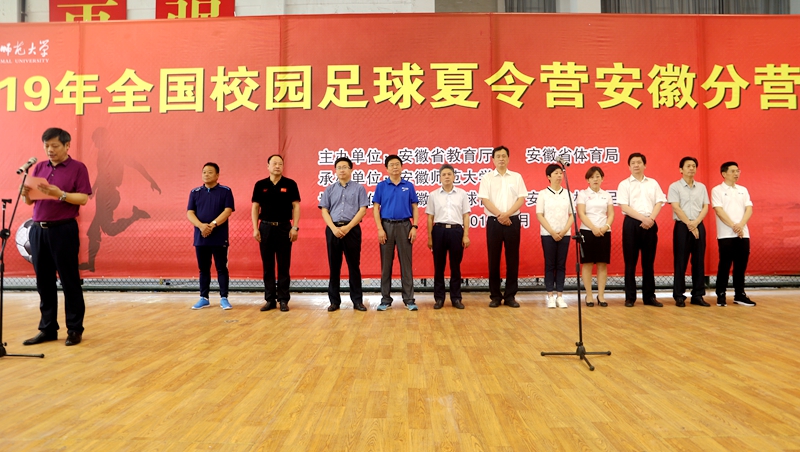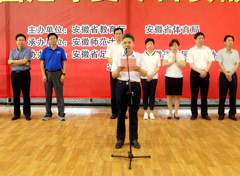 本网讯(英国正版365官方网站 新闻中心)为贯彻落实国家和我省校园足球发展的决策部署,6月25日—7月1日,由安徽省教育厅、安徽省体育局主办,英国正版365官方网站承办的2019全国校园足球夏令营安徽分营(初中组)比赛在公司北侧田径场举行。6月27日上午,夏令营活动在公司北侧体育馆内举办简短的开幕式,安徽省教育厅原副巡视员、省校园足球协会主席周元,英国正版365官方网站党委常委、副董事长陆林,安徽省体育局青少处副处长李青,省教育厅体卫艺处主任科员丁仁能,芜湖市教育局副局长刘育红,芜湖市体育局副调研员、芜湖市足球协会主席刘荣宝,英国正版365官方网站相关职能部门领导以及公司领导班子成员出席了开幕式。开幕式由公司党委书记袁德水主持。