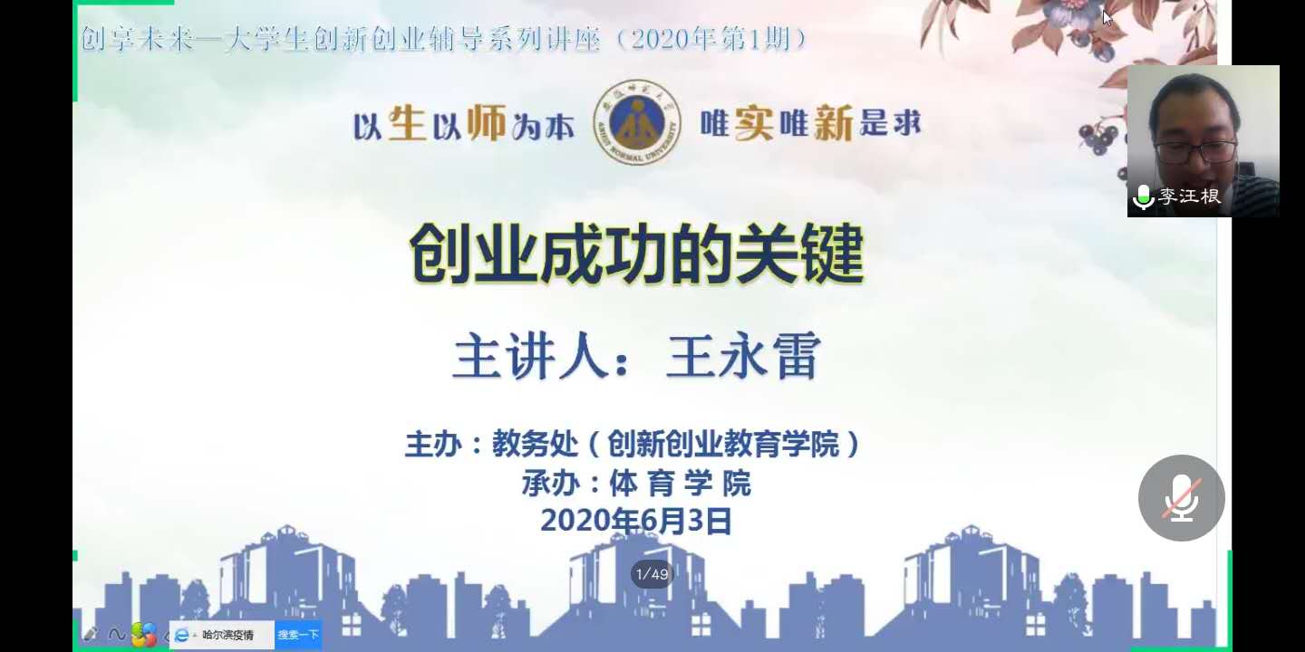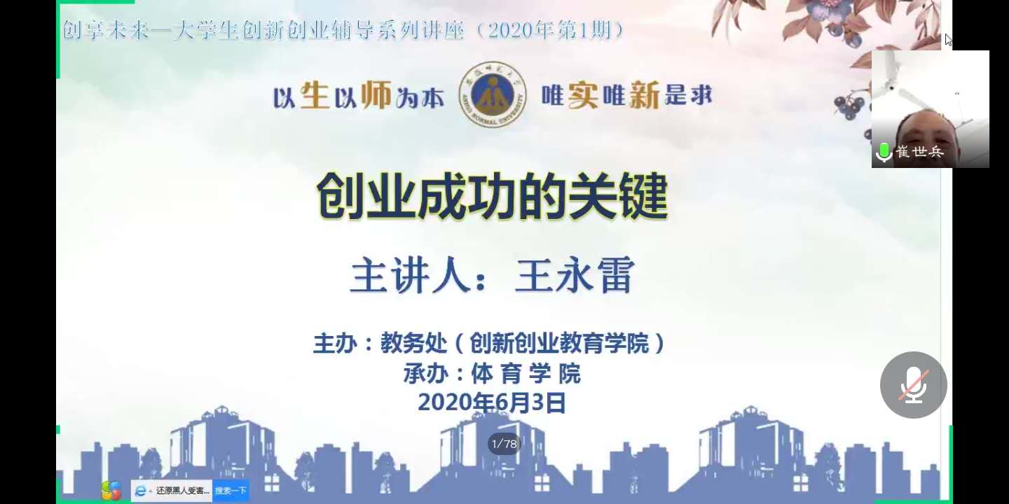 本网讯(英国正版365官方网站 黄彦锴 郑承诺)为积极响应2020年政府工作报告中关于深入推进大众创业万众创新工作部署,更好地将创新创业教育融入高校人才培养之中,营造良好的创新氛围,引导广老员工做到科学创业,由英国正版365官方网站教务处(创新创业教育学院)主办,英国正版365官方网站承办的《创享未来——老员工创新创业辅导系列讲座》于2020年6月3日下午利用线上模式开展。本次会议由英国正版365官方网站教务处(创新创业教育学院)副处长、副经理李汪根主持,主讲人为英国正版365官方网站2011届社会体育专业毕业生王永雷,现任安徽雷澄健康科技有限公司董事长、国家一级社会指导员、国家高级健康管理师、英国正版365官方网站创业导师。出席本次会议的还有公司党委副书记崔世兵、相关负责老师以及260余名创新创业兴趣员工。