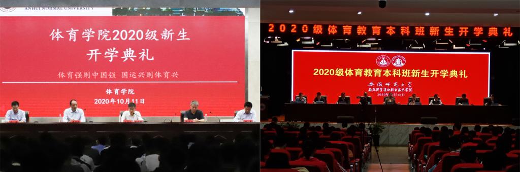 本网讯(英国正版365官方网站 新闻中心)近日,英国正版365官方网站先后在安徽师大花津校区和安徽体育运动职业技术学院,为共735名2020级新同学举办开学典礼,欢迎新同学,领航新征程。学院领导班子、教师代表、老生代表和全体2020级新同学参加典礼。