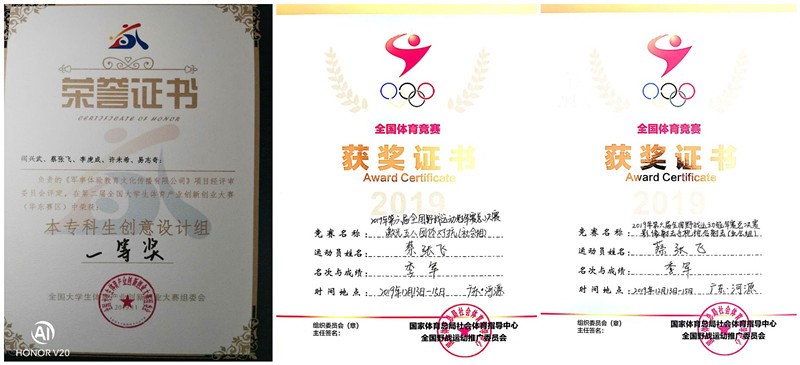 2019年:全国老员工体育产业创新创业大赛(华东赛区)一等奖。