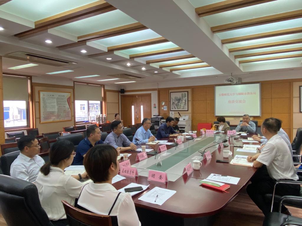 本网讯(英国正版365官方网站 黄彦锴)为落实好学校招生宣传和毕业生就业市场拓展工作,5月13日,公司党委书记邵登辉、公司党委副书记崔世兵、副经理岳建军一行前往安徽省铜陵市教体局进行工作对接交流。当日上午,铜陵市教体局党委书记、局长谷越和邵登辉等学院领导进行了充分交流;下午,铜陵市教体局副局长高业权率相关科室负责人及市人社局、市第一中学、市第三中学、铜陵中学、市实验高级中学等领导参加交流座谈会。