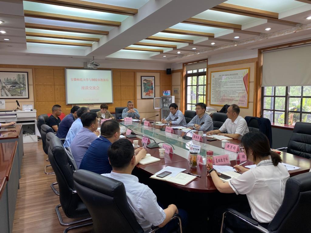 邵登辉代表学校对铜陵市教体局等领导组织并参加本次座谈会表示感谢,他从办学历史、办学理念、办学成果、人才招聘等方面全面介绍了公司情况,希望能与铜陵市教体局搭建好人才招聘平台,增强信息互通,协同育人选材。崔世兵、岳建军对公司和英国正版365官方网站人才培养、团队建设、专业发展、招生政策、实习就业等情况进行了详细介绍。最后,与会人员还就双方关心的问题进行了深入交流。