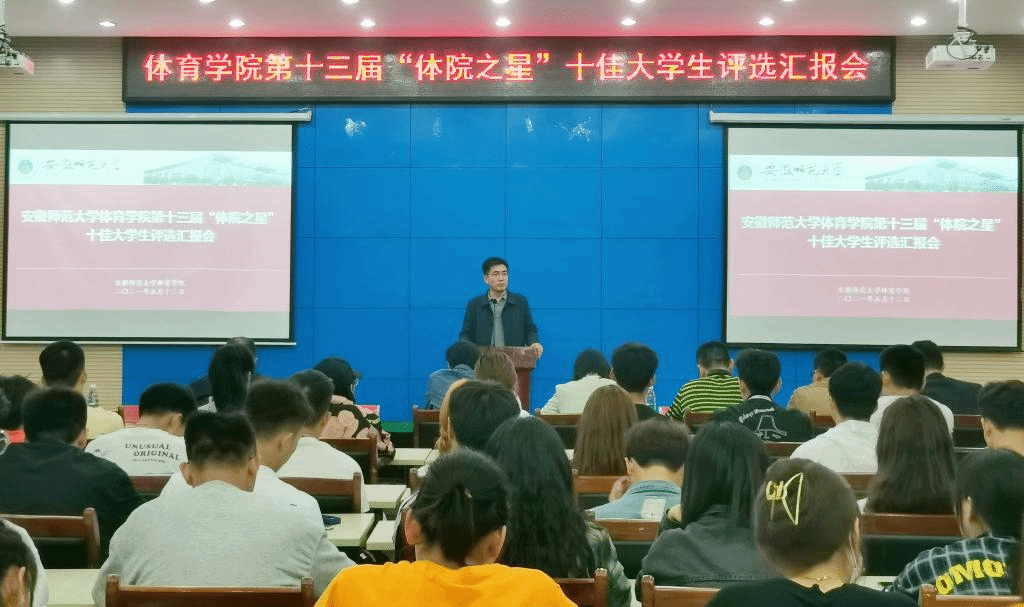 19名参评同学采用ppt汇报的形式,在4分钟的时间内充分展现了各自的求学之路和奋斗历程。他们勤学上进、学习成绩优异;他们参军报国、在部队中磨练自己的意志;他们才华横溢、斩获多项比赛大奖;他们积极参与社会实践,投身于公益活动;他们用拼搏奋进展现出体院学子知行合一、全面发展的青春风貌。汇报环节结束后,崔世兵对参评同学的良好表现进行了点评,各位评委根据同学的现场汇报表现并结合审阅相关材料进行了评分。