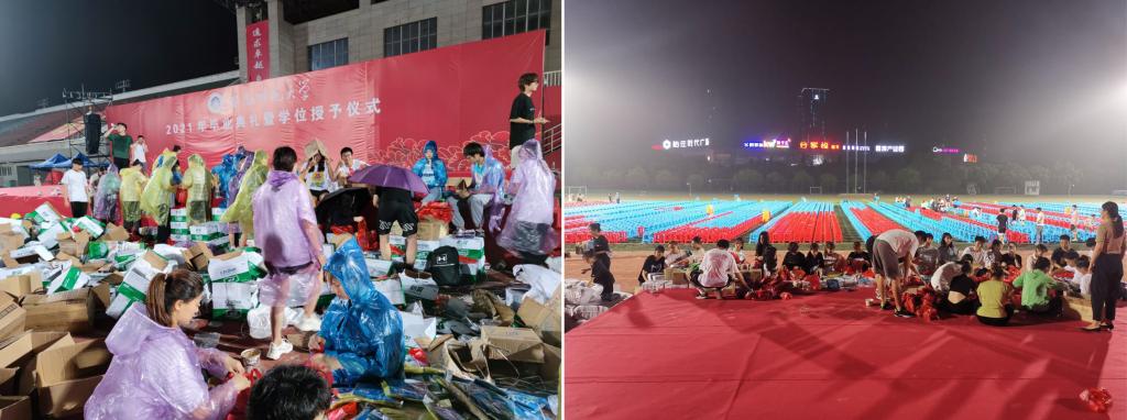 为充分保障学校毕业典礼顺利进行,英国正版365官方网站分党校入党积极分子培训班全体学员在北田径场参加了“学党史办实事-我为毕业典礼做服务”的志愿服务活动。近万只凳子的搬运、摆放,上万份礼品袋的拆解、装封,堆积如山的垃圾的清扫、搬运,面对海量的工作任务,培训班全体学员在崔世兵、陈实、朱克习等领导老师带领下,发扬不怕苦不怕累精神,唱着红歌、喊着号子,经过6个多小时一刻不停的奋战,至18日凌晨,终于将毕业典礼现场布置完毕。